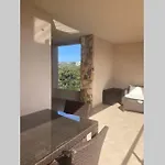 Appartement Dans Residence Salina Bay A Porto Vecchio provides guests with a balcony, a terrace, and a sitting area equipped with an air conditioner and furnished with a sofa. A flat-screen TV with satellite channels make up the in-room media amenities. Offering a bidet and a shower, a bathroom comes with a hair dryer and towels.